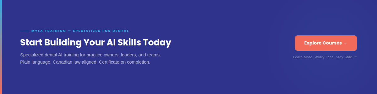 For dental teams that want clear, practical guidance, Myla’s AI Essentials training helps practices understand AI risks, privacy considerations, safe workflows, and team responsibilities.